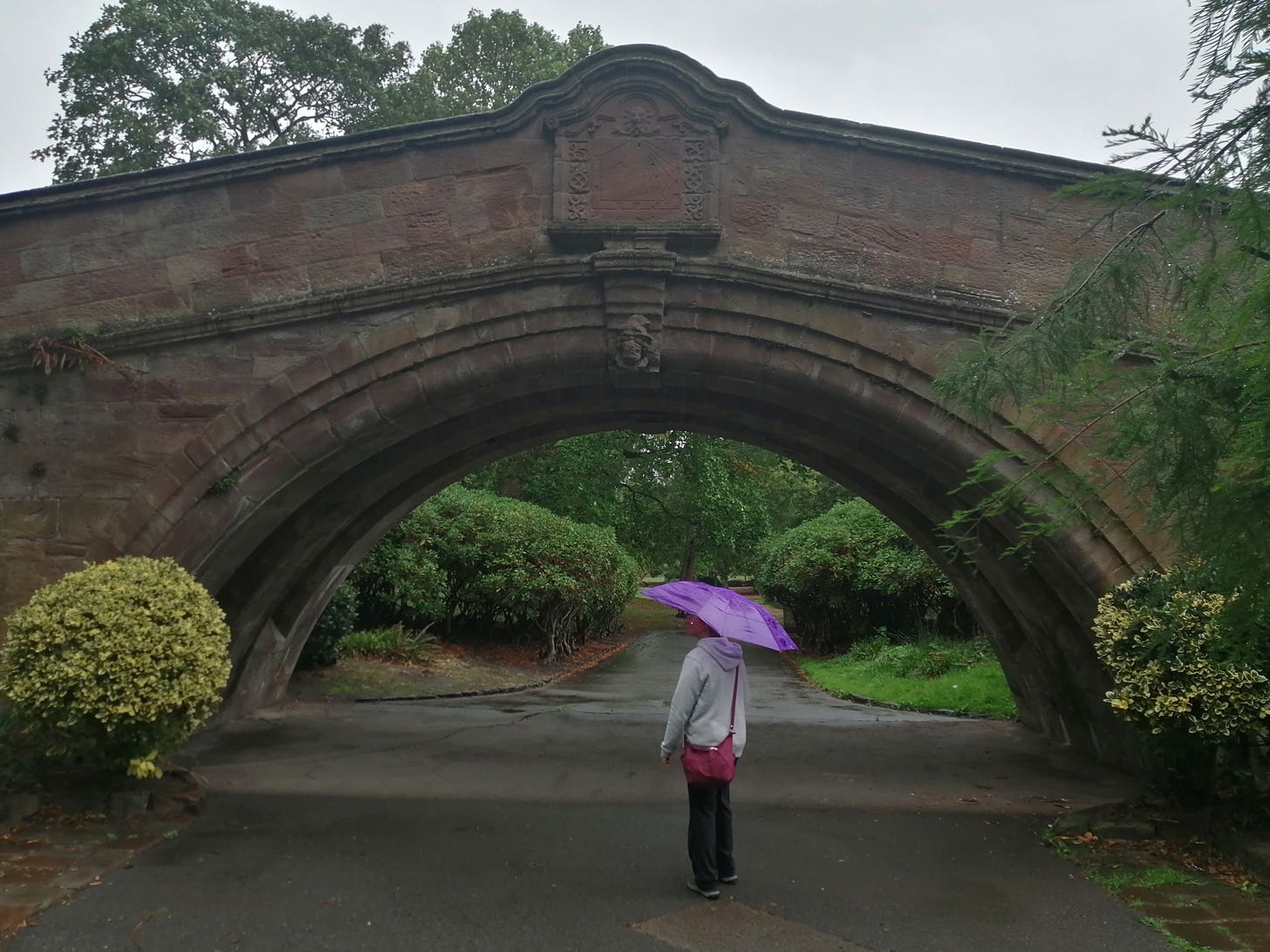 Later that afternoon we made the most of a break in the rain to explore other parts of Port Sunlight’s 130 acres of parkland. There was a more modern feel to the place we came to; as secluded as The Dell among stands of mature trees (many living in symbiosis with colonies of fungi near their bases), with the difference of a few small disused historic buildings and a sensory garden in the centre of a play area.