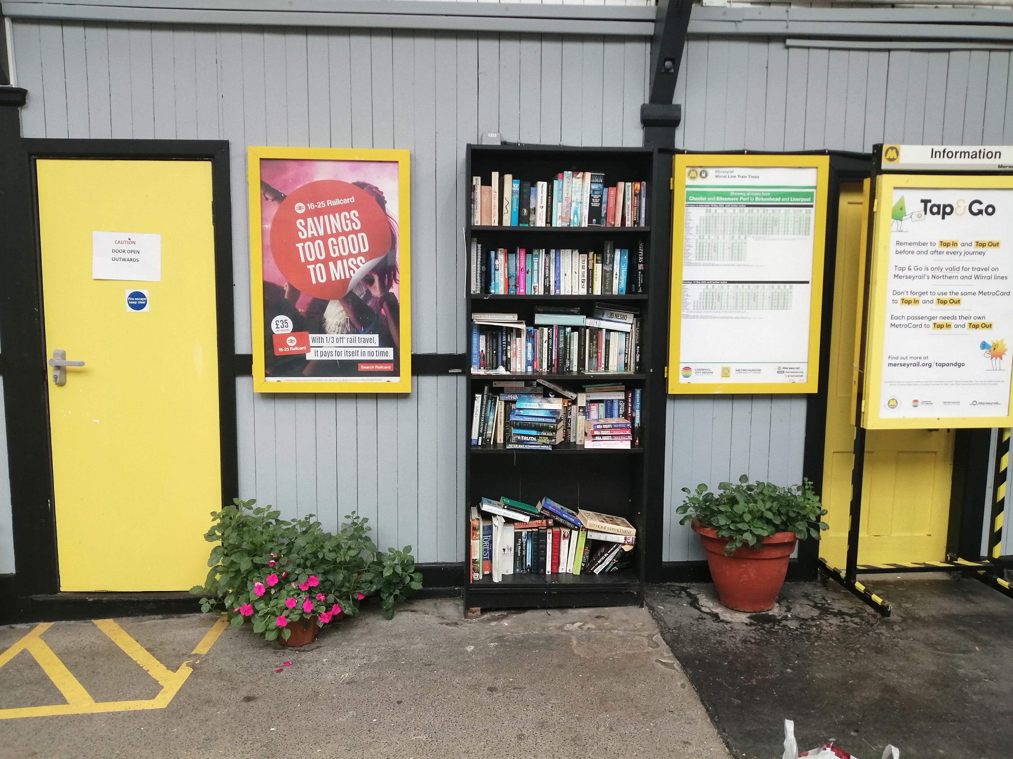 I think I do now know what gives it this feel for me - it is a quietly cared-about place. My first sense of this came from the case of donated books in the station foyer, flanked by plant pots spilling over with growth.